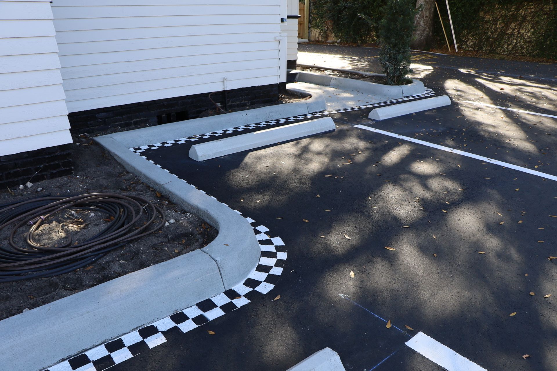 This exciting project included CUSTOM STRIPING! Alto Construction created a series of stencils based on the design of the customer which we installed as pavement markings at the end of the project. Leading up to the striping, this parking lot was milled and overlaid with new pavement. Select areas were demolished & regraded for concrete pavement. All of the millings and demolition debris was hauled to our nearby recycling centers. A few weeks after paving, we returned to sealcoat the asphalt pavement areas to really enhance the curb appeal! What do you think of this intricate paving project?