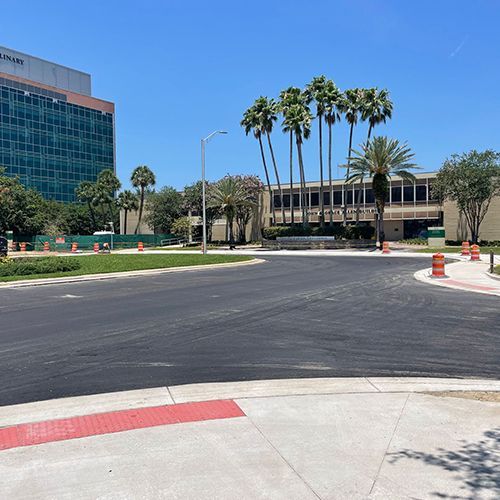 Our in-house concrete crews removed and replaced thousands of linear feet of Type F curb. The full depth reconstruction consisted of asphalt and base removal, 12” stabilization, import of new crushed concrete roadbase, fine grading, and two lifts of asphalt paving. Nearly 100% of this work was handled with in-house personnel and equipment. This asphalt restoration project consisted of multiple phases. Alto Construction set up and monitored the Maintenance of Traffic (MOT) to keep a safe & productive working environment while still allowing access to the campus’s important infrastructure.
